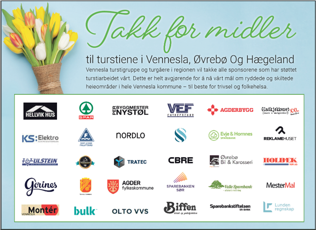 Velkommen til oss i Vennesla turstigruppe. Vårt hovedfokus er å tilrettelegge for andre - gjennom bedre turstier. Vi skilter, rydder, guider, publiserer på ut.no og i Vennesla tidende. Vi lager kart og kulturminneplakater, naturstier og kulturstier. Alt for å styrke folkehelsa, turgleden og trivselen